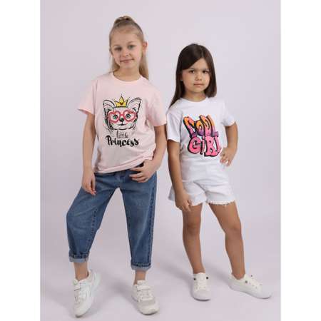 Футболка для девочки, 2 шт. Футболки из 100 % натурального хлопка с высококачественным принтом, нанесенным по технологии "аквапринт", которая отличается экологичностью, безопасностью, отсутствием повреждения структуры ткани, сохранением дышащих свойств материала, а также отличной износостойкостью. Задняя часть горловины отделана бейкой из основного полотна. Футболки не растягиваются и не теряют цвет даже после многочисленных стирок.
