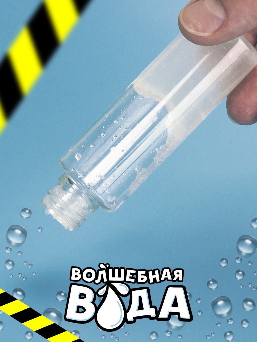 Химический трюк с водой. Преврати обычную воду в твердый гель, который не будет выливаться из флакона, а потом обратно. В наборе компоненты для проведения 2 опытов. Детский набор для химических опытов и экспериментов - подарок для ребенка, который непременно вызовет восторг у маленьких любителей химии и их родителей. Набор для детей включает в себя: химические реактивы и посуду, вспомогательные средства. Набор для опытов увлечет любителя химии независимо от возраста. Это интересный подарок на день рождения и другой праздник ребенку. В серии Re-агенты есть разные наборы для экспериментов: 1. Фараонова змея 2. Извержение вулкана 3. Мега-лизун 4. Сияющий риф 5. Много пены из ничего 6. Жвачка для рук 7. Неньютоновская жидкость 8. Искусственный снег 9. Полимерные червячки 10. Химический сад 11. Волшебная вода 12. Чернила для шпионов. Найди все опыты из серии введя в поиске Re-агенты.