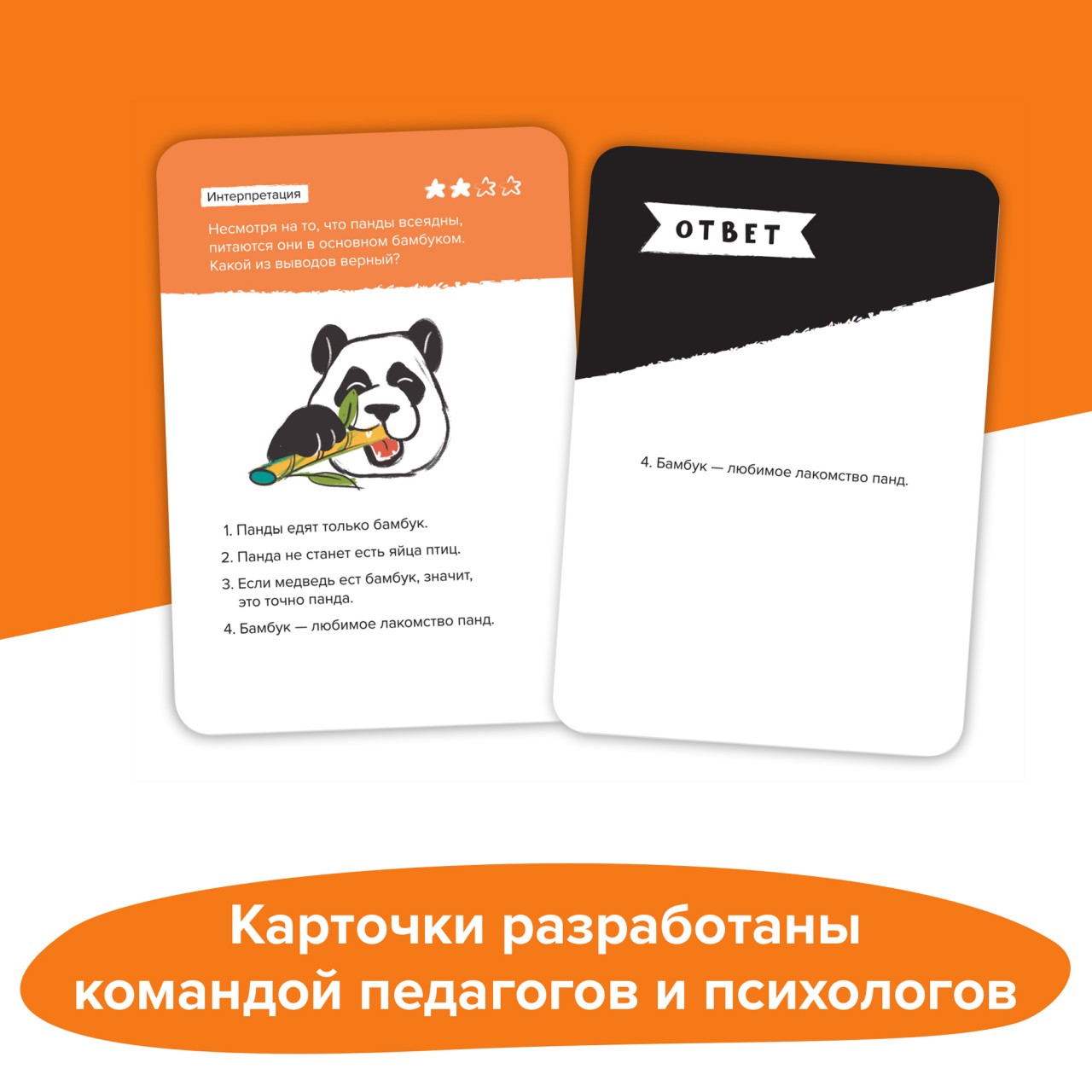 В наборе 80 карточек с заданиями. Каждой из них соответствует свой уровень сложности и основная компетенция, которую развивает данный тип заданий. На обороте карты — ответ с обоснованием решения.