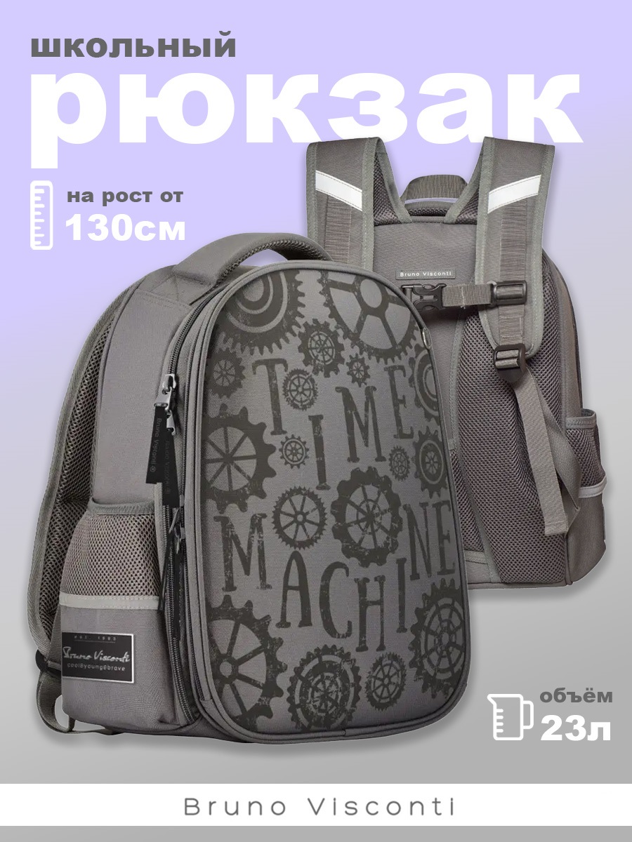 Рюкзак школьный Bruno Visconti облегченная капсула серый с эргономичной спинкой Машина времени