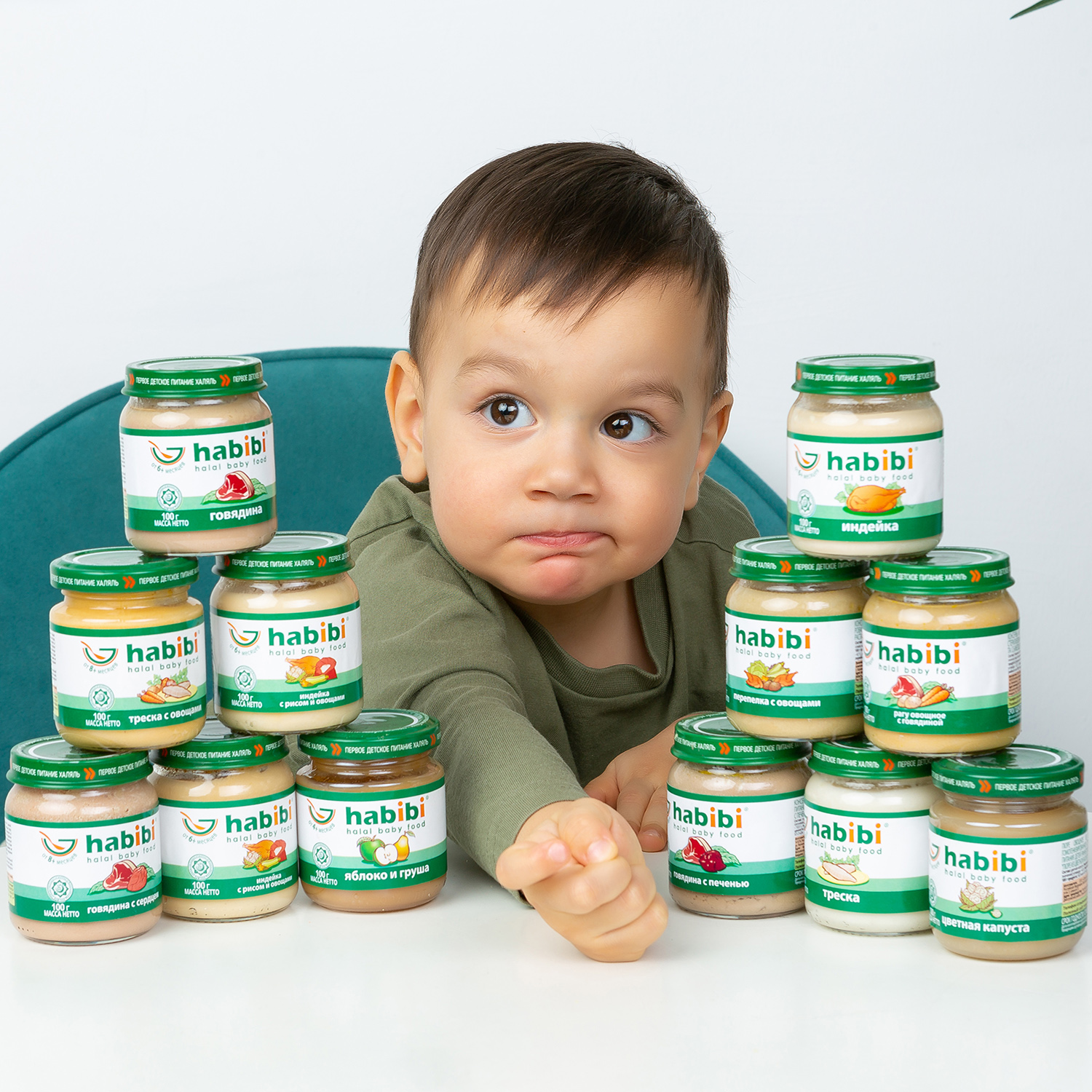 Пюре Яблоко-банан-творог Habibi Халяль 6 шт по 100 г
