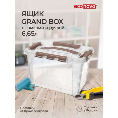 Ящик для хранения Econova универсальный с замками и ручкой Grand Box 6650 мл коричневый