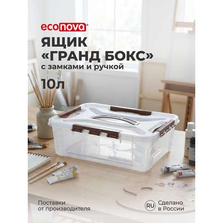 Цена на Ящик для хранения Econova универсальный с замками и ручкой Grand Box 10 л коричневый - 1056 ₽.