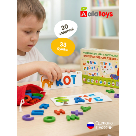 Настольная развивающая детская игра Алатойс Интерактиваная азбука для малышей(20 заданий, 33 буквы) + гайд с играми