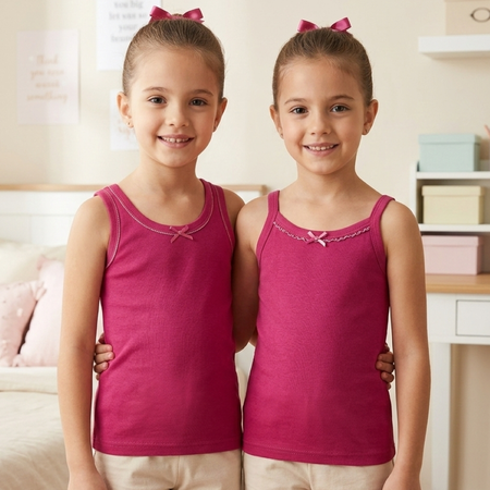 ЦВЕТ : ФУКСИЯ Хлопковая майка для девочек - 2штуки Набор маек для девочки на широких лямках , на брительках , набор от 3 до 12 лет , это идеальное решение для комфортного повседневного использования. Представляем разнообразные , БЕСШОВНЫЕ майки для девочек . Мы заботимся о качестве и комфорте детей, поэтому все наша майка для девочки изготовлена из мягкого и дышащего хлопкового материала РИБАНА. Майки на девочку представлены в различных дизайнах и цветах. Наша майка для девочек нательная , изготовлена из качественных материалов, при соблюдении режима стирки, обеспечит нежность и мягкость на коже вашего малыша. Нательные майки для девочки повседневные , представлены в различных размерах . Не упустите шанс приобрести набор маек для девочек со скидкой. Комплект маек для девочки обеспечит её стильными и современными моделями. Нижнее бельё - отличный подарок для девочки !