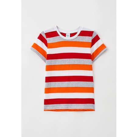 Футболка для мальчика в полоску классического прямого кроя с коротким рукавом выполнена из натурального 100% хлопка.