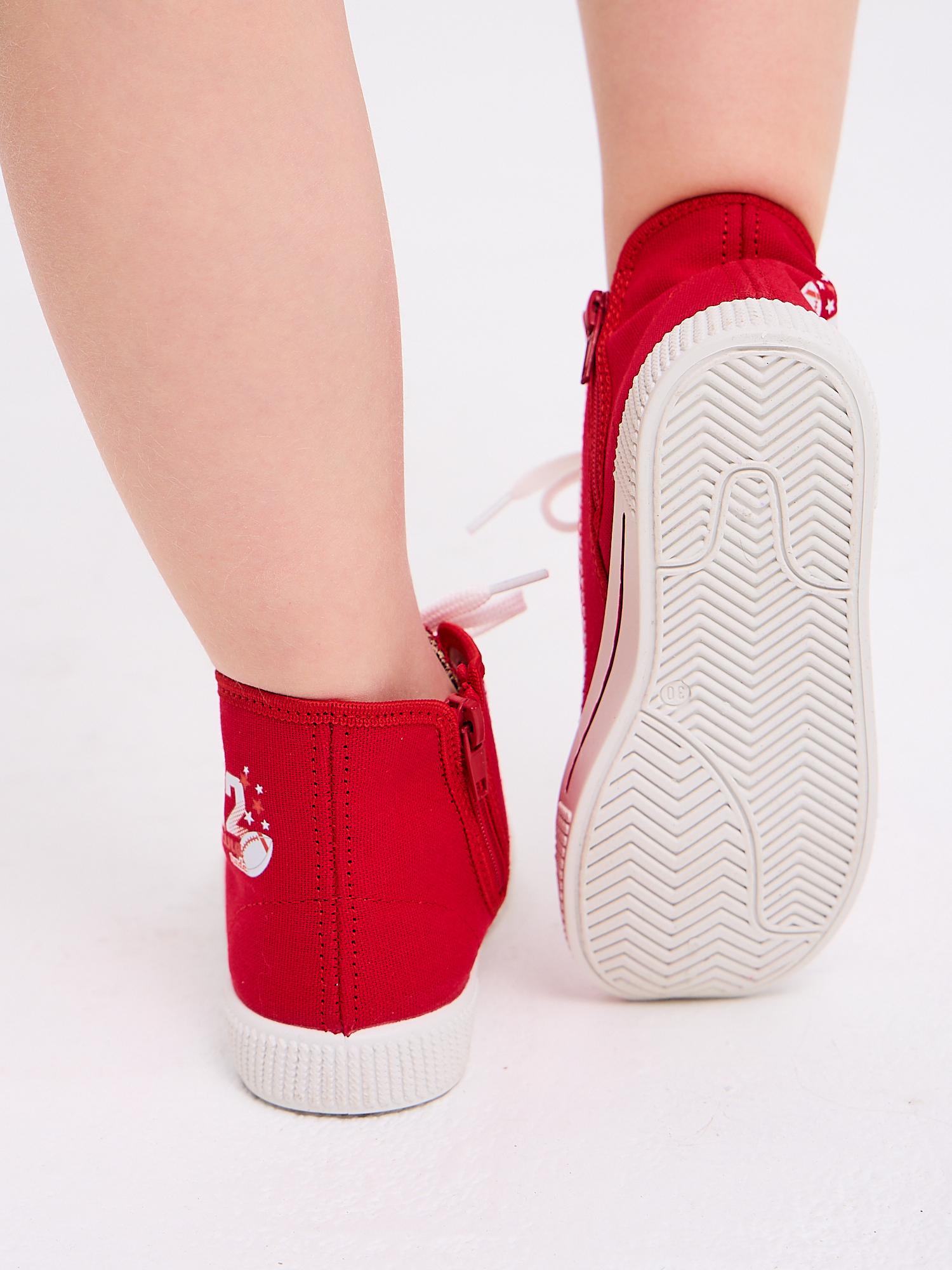 Хлопковые детские кеды – это универсальная обувь для мальчиков и девочек на все случаи жизни, подходящая под любой наряд. Легкие кроссовки создают отличный комплект как с юбками и платьями, так и с любыми брюками, джинсами или костюмами. Незаменимы такие яркие классические кеды для ношения со спортивной одеждой. Базовые кроссовки неотъемлемой частью гардероба малышей, дошкольников и младших школьников. Удобные хлопковые кроссы со шнуровкой в качестве летней, осенней или весенней обуви незаменимы для ежедневных прогулок, активного отдыха или туристических походов. Классические тканевые кеды с белыми шнурками, помимо туризма незаменимы и для занятий спортом, летом, весной или осенью в них можно заниматься скейтбордингом, бегом, спортивной ходьбой, ходить в них на уроки физкультуры в школе. Правильное положение стопы и фиксация ноги, при помощи усиленного задника и молнии, позволяют носить такие кеды в течение долгого времени. Дышащие яркие молодежные хлопковые кеды с надписями представлены в шести цветовых вариантах . Классические тканевые мягкие кеды на танкетке – это классика для школьников, они носят их на занятия в качестве сменки зимой.Наша модель с рисунком выступает в роли сменной обуви на каждый день в садике или на дополнительных занятиях в образовательных центрах. Завышенные цветные кеды на завязках с подошвой и носом из прочного пвх подходят на ногу любой полноты: широкую или узкую. Тряпочные кеды на толстой подошве для носки на улице и в помещении обеспечивают ногам комфорт в течение всего дня. Базовые кеды на каждый день со шнуровкой. Удобные кроссы на танкетке для детей разного возраста отлично подходят в качестве праздничной обуви для создания современного стильного образа.