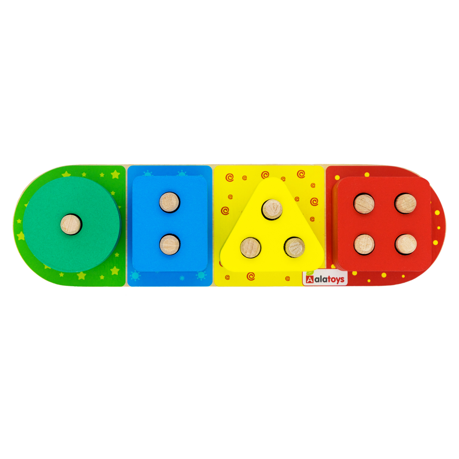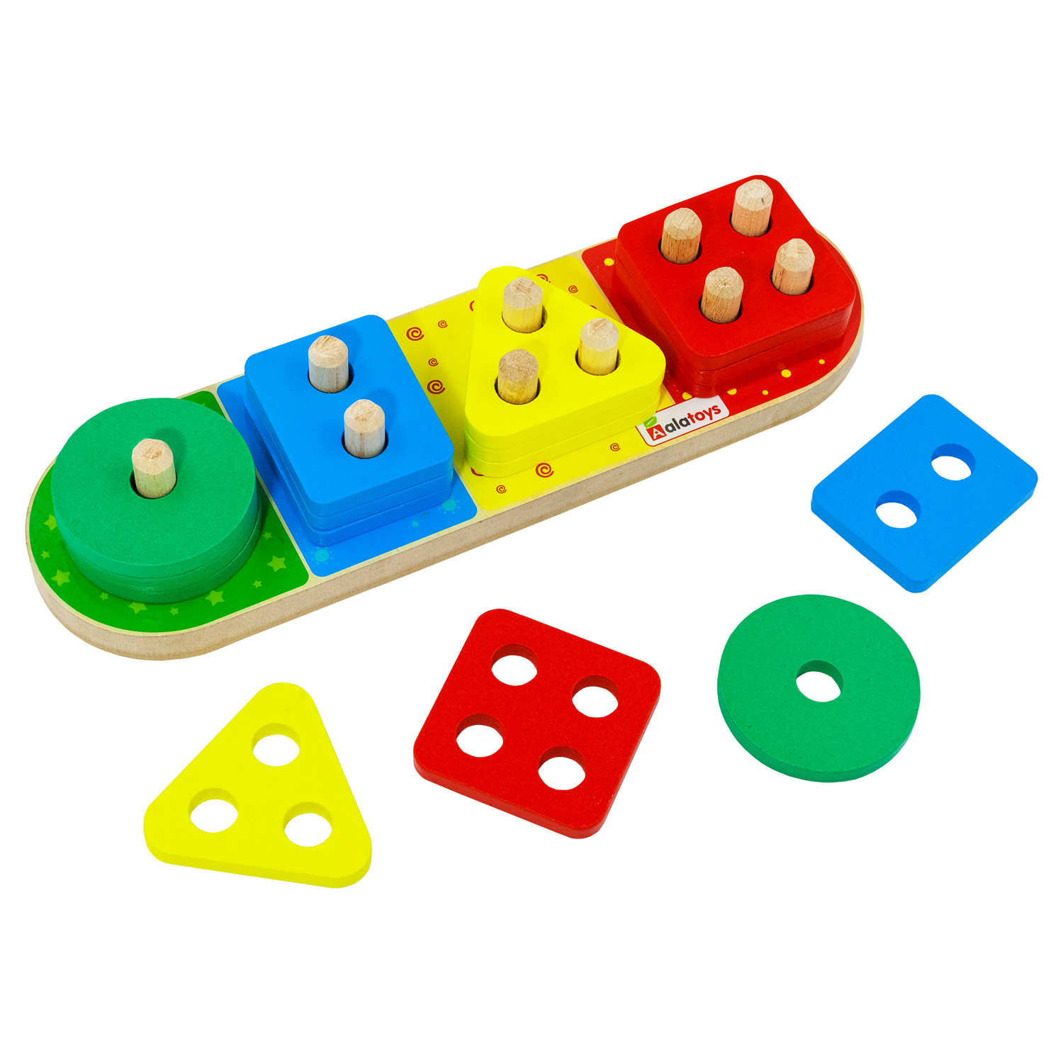 Сортер – одна из самых важных и полезных игрушек для малыша. Основная задача сортера – научить ребёнка раскладывать фигуры по форме и по цветам. В каждой фигуре определенное количество отверстий. Они нужны для того, чтобы надевать фигуры на шканты на основе. Процесс сортировки тренирует мелкую моторику, зрительно-моторную координацию малыша, развивает наглядно-действенное и наглядно-образное мышление. Кроме этого, играя с сортером, ребёнок познает цвета и формы геометрических фигур. В процессе разных игр с сортером у малыша развивается память, внимание, мышление и воображение.