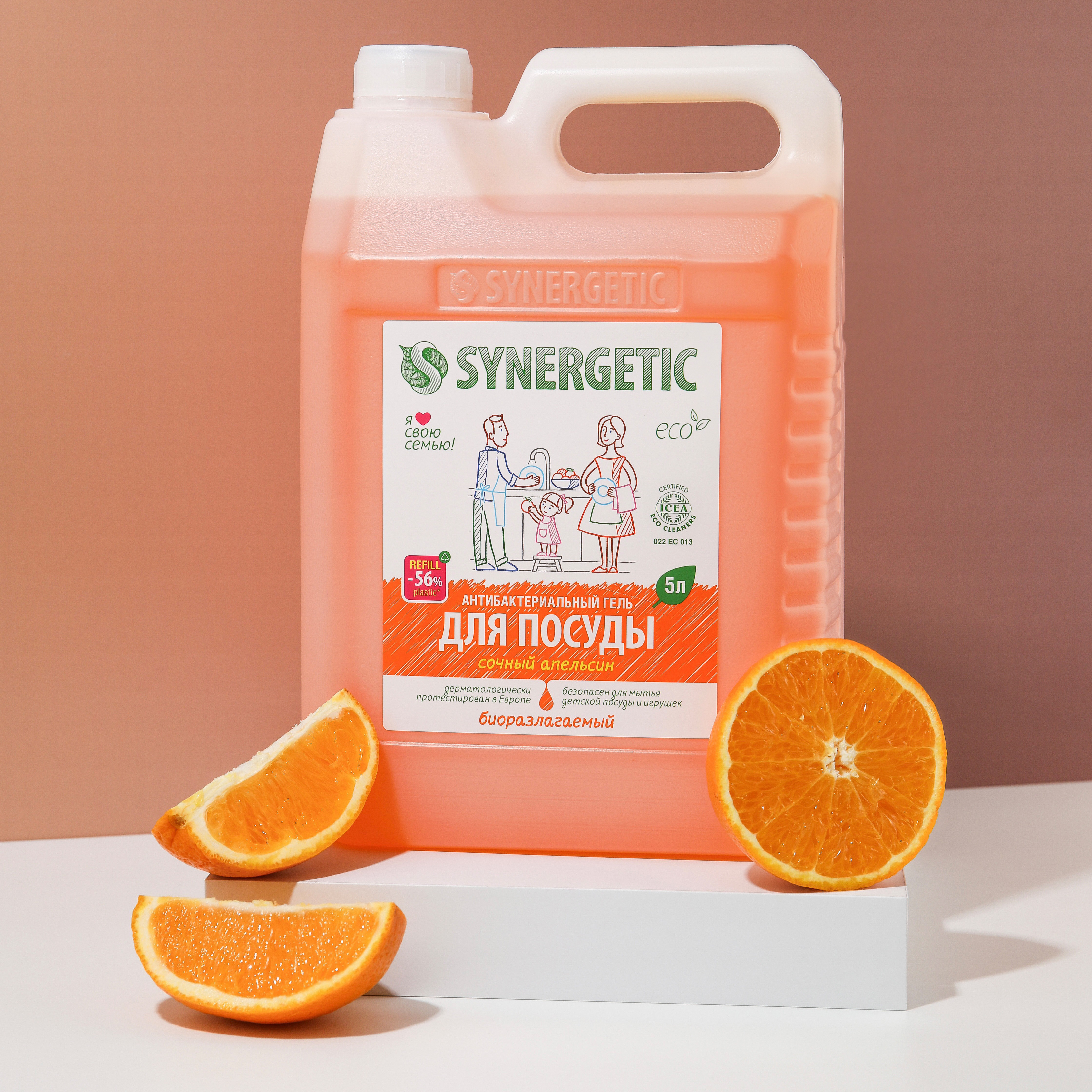 Средство для мытья посуды SYNERGETIC Апельсин антибактериальное 5 л