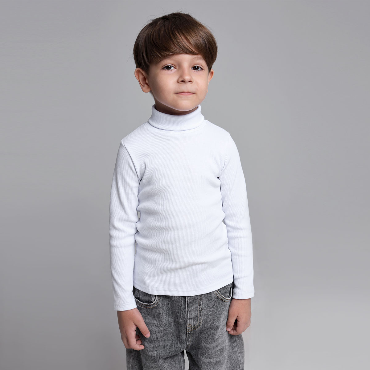 Самое то на осень и весну - изделие с длинными рукавами и высоким двойным горлом с подворотом согреет вашего ребенка в прохладную погоду. Ворот мягкий, но плотный - не сползает, но и не давит на шею. Универсальный демисезонный теплый лонгслив в рубчик пригодится и зимой - сверху удобно надеть куртку, рубашку или жилетку - получается многослойный практичный комплект. Классическую водолазку можно использовать как одежда для сна, а малышам 3 - 4 года понравится носить ее в детский сад.