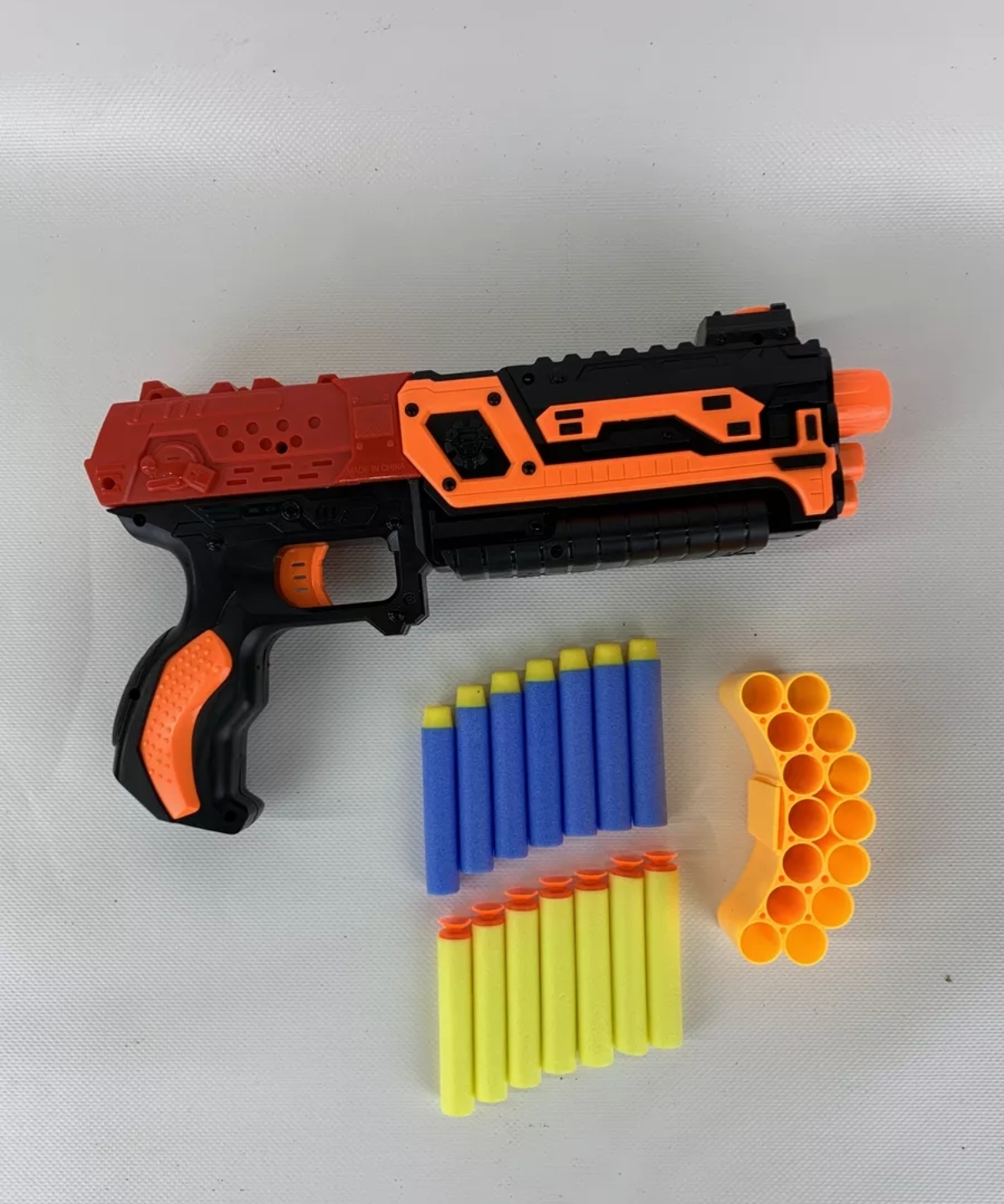 Мальчишки обожают играть в войнушку, а такой бластер станет отличным дополнением к развлечению и поможет ребёнку одержать победу в каждом сражении! Автомат стреляет мягкими патронами, которые не нанесут травм малышу и безопасны для интерьера квартиры. Оружие Бластер имеет футуристичный дизайн, а к нижней части ствола можно прикрепить патронташ для хранения боезапасов, чтобы иметь к ним быстрый доступ. Также игрушка обладает звуковыми и световыми эффектами. В комплект входит: - автоматический бластер; - патронташ; - 14 патронов (7 обычных, 7 с присоской). Для работы оружия требуется 3 батарейки AG13 (НЕ входят в комплект), 2 батарейки АА (НЕ входят в комплект). Игрушка сделана из высококачественного пластика, гипоаллергенного и безопасного для здоровья ребёнка. Данный пистолетом смонут справится дети от трех лет. Сбоку бластер с присосками имеет красный переключатель который включает лазерный прицел и подствольный фонарик. Вы хотите порадовать своих детей увлекательной игрушкой? Тогда этот новый детский бластер с мягкими пулями станет отличным подарком. Игрушка подходит для мальчиков и девочек в возрасте от 5 лет. Этот игрушечный пистолет с пульками - настоящий автомат, который обязательно привлечет внимание ваших детей. Он создает ощущение реального оружия, но при этом абсолютно безопасен для игры. Бластер оснащен пневматическим механизмом, который позволяет с легкостью стрелять мягкими пульками на достаточно большое расстояние. Это дает детям возможность веселиться и играть в различные сюжеты, включая битвы с пауком или человеком-пауком, настоящего дня рождения, демонов, рыцарей и многое другое. Бластер является отличным выбором для детей, которые увлекаются играми вроде Minecraft или шутерами. Он поможет детям развивать фантазию и координацию движений. Этот мощный бластер будет прекрасным подарком для вашего ребенка, друга или брата.