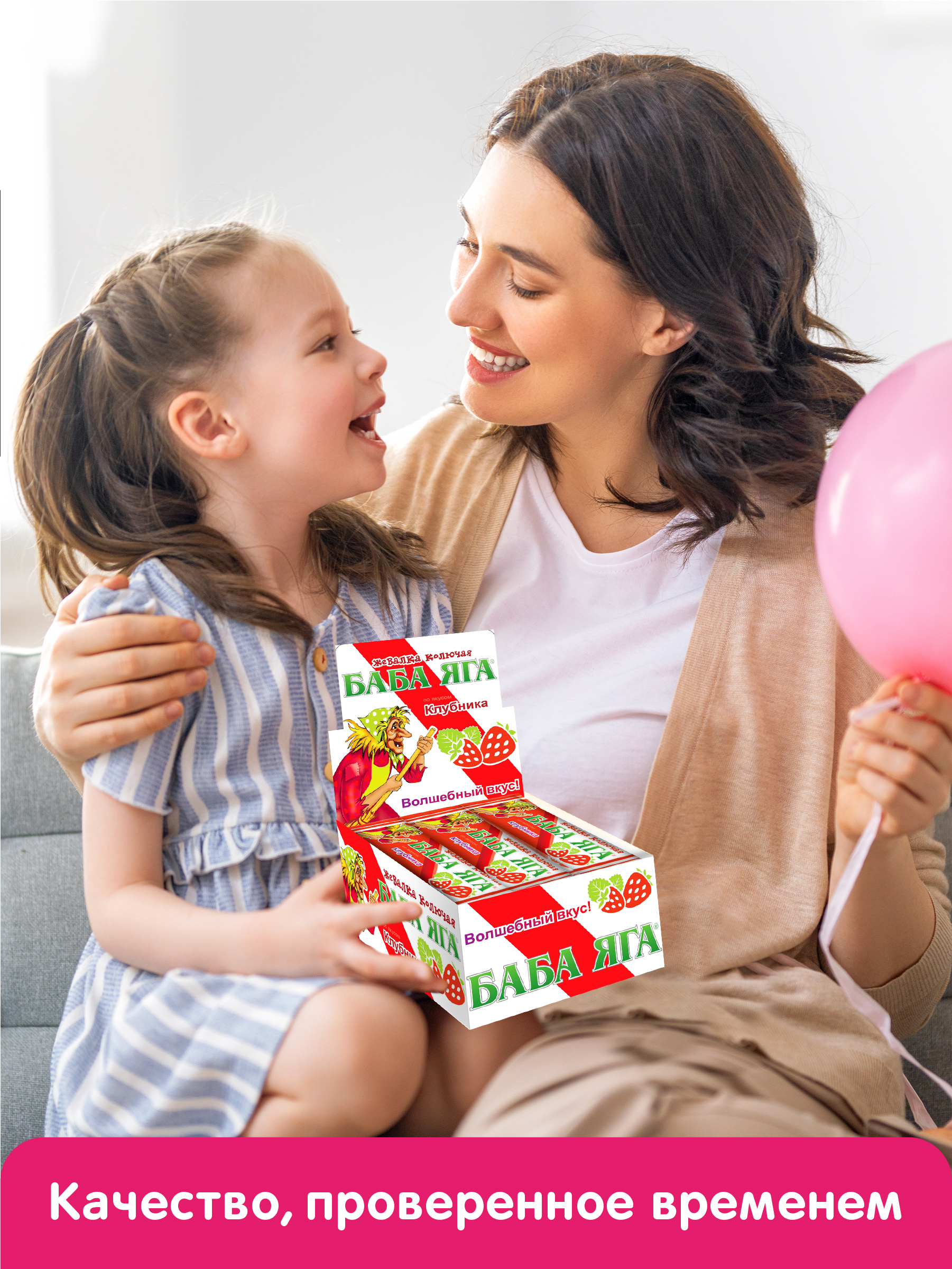 Жевательные конфеты "Баба Яга" от ГК "Сладкая Сказка" со вкусом сочной клубники - сладости, которые успешно продаются на российском рынке уже более 20 лет. Они также популярны и любимы детьми самых разных возрастов даже сейчас. Если вы тоже хотите вспомнить чудесные детские году, купите вкусные конфеты "Баба Яга". Сладости со вкусом нежной и ароматной клубники производятся без красителей, ароматизаторов и трансжиров. Полностью российское производство. Каждая жевательная конфета в индивидуальной упаковке с изображением героини русских сказок. Продукт можно заказать только блоком, внутри которого 48 жевательных конфет для вашего удовольствия и наслаждения. Такая покупка идеальна для коллективного подарка в детском саду или в школе. А также в качестве маленьких подарочков во время конкурсов, которые устраивают аниматоры на детских праздниках. Вкусный сладкий подарок от ГК "Сладкая Сказка" понравится, как маленьких сладкоежкам, так и взрослым.
