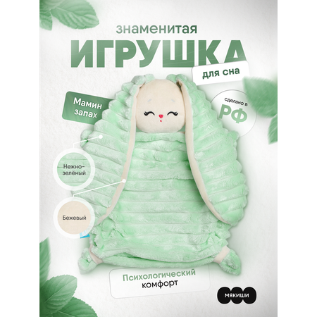 Мягкая игрушка Мякиши комфортер для новорожденных Зайка Банни нежная мята
