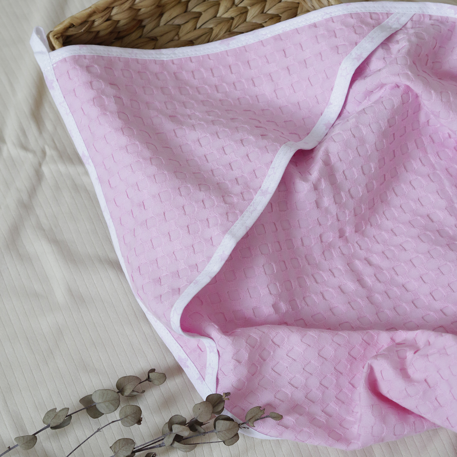 Полотенце-уголок выполнено из уникальной натуральной ткани пике. Ткань пике – это хлопковая ткань с особым переплетением нитей, которое обеспечивает красивый геометрический узор правильной формы. Благодаря этому пике отлично держит форму и отличается практичностью: имеет хорошее сопротивление к сминанию, достаточно плотная, оставаясь при этом мягкой и легкой. Она прекрасно подходит для изделий, требующих гигроскопичности и воздухопроницаемости. Наше полотенце-уголок – это мягкое, ласковое, заботливое прикосновение к нежной коже вашего малыша. Оно прекрасно подходит для новорожденных, не вызывает аллергии и позволяет завернуть кроху от макушки до самых пяточек; а затем, когда малыш подрастет, использовать как накидку или пончо после водных процедур. Полотенце идеально подходит для пляжа, бассейна, бани, принятия ванн. Уголок полотенца служит капюшоном, который защитит малыша от сквозняков. Ткань отделана кантом и снабжена удобной петелькой.