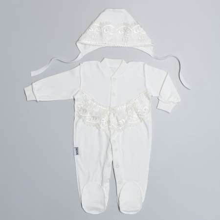 Комплект для малышей из комбинезона с кокеткой и декором и чепчика. Прекрасно подйдет для выписки или подарка.