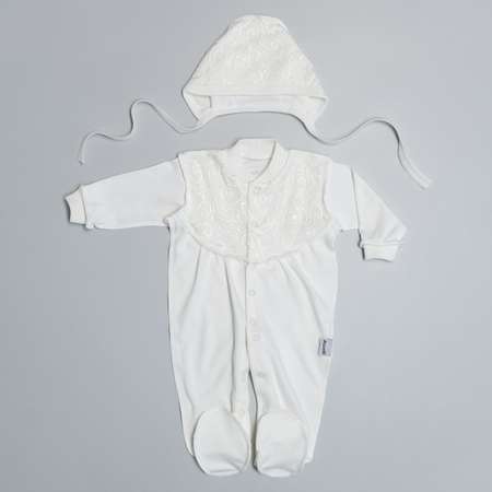 Комплект для малышей из комбинезона с накладкой "сетка-шитьё" и чепчика. Прекрасно подйдет для выписки или подарка.