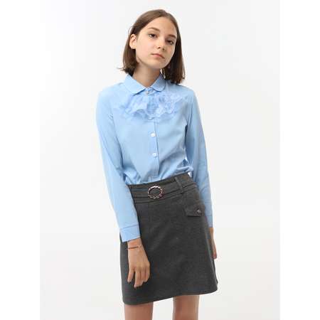 Модель выполнена из блузочного материала, приятного на ощупь. Детали: - приталенный крой; - отложной воротник; - длинные рукава с манжетами; - застежка на пуговицы; - съемное жабо из гипюра.