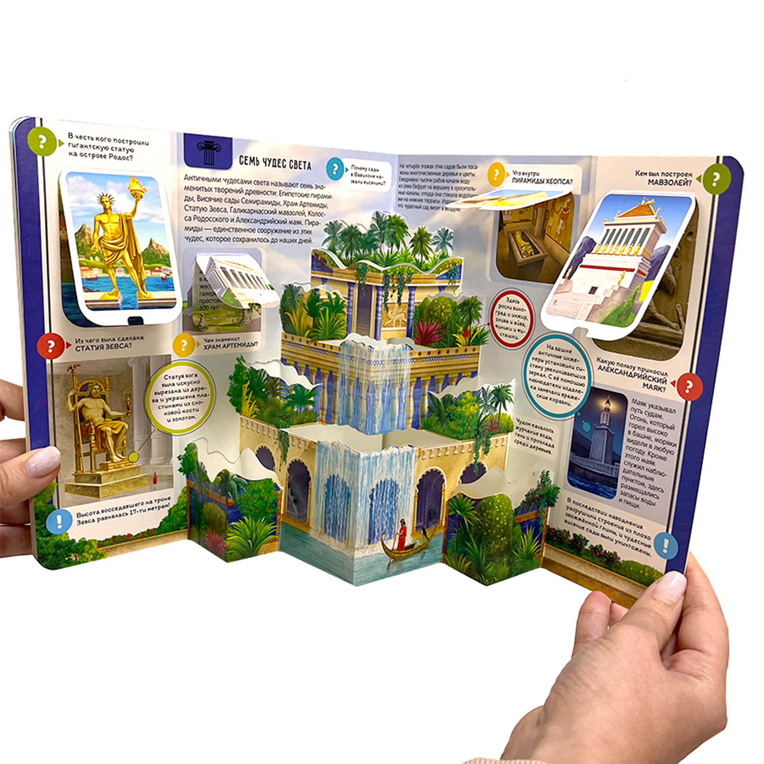 Книги из серии «Энциклопедия открытий» от торговой марки Malamalama — это настоящая сокровищница удивительных фактов и ответов на популярные вопросы маленьких почемучек. Книга Древний мир -рассказывает о жизни древнего человека, о строительстве пирамид и о фараонах, о традициях древних греков и римлян, об изобретении печатного станка и водопровода. Объёмные POP-UP конструкции и красочные иллюстрации сделают изучение запоминающимся и лёгким. Эта уникальная книга откроет перед вашими девочками и мальчиками 3 лет самые необычные сказки и загадки. Открытия дают импульс для развития эмоционального интеллекта и логического мышления