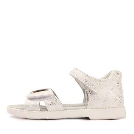 Сандалии для девочки Futurino белого цвета, украшенные объёмными серебристыми бабочками.