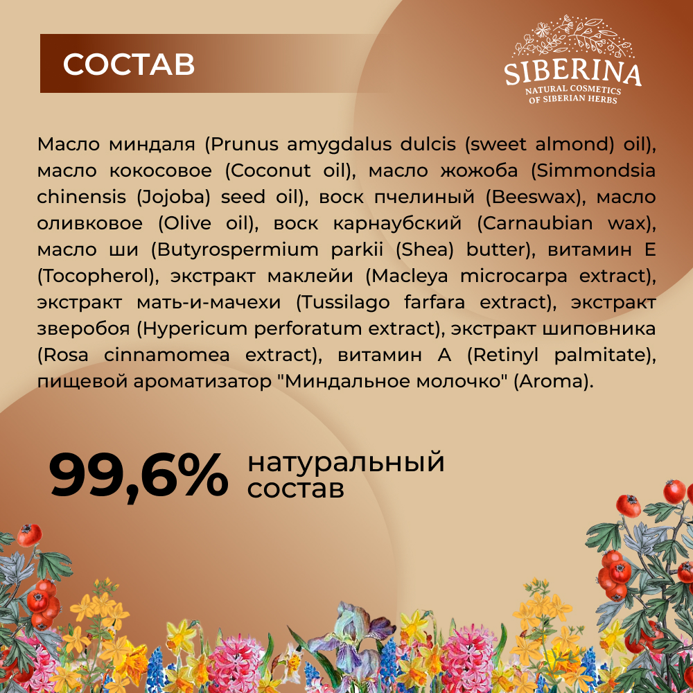 Бальзам для губ гигиенический Siberina натуральный «Миндаль» от сухости и шелушения 6 мл