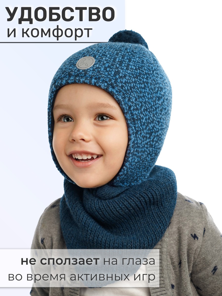 Шапка для мальчика и снуд в комплекте на зиму. Комплект шапка снуд — необходимый и удобный аксессуар, который надежно защитит голову и шею ребёнка от холода. Шапка зимняя для мальчика создана из высококачественной смесовой пряжи, состоящей на 30% из шерсти и на 70% из акрила. Внутри шапки равномерно распределен инновационный утеплитель орсотерм, главными преимуществами которого являются легкость и морозостойкость. Шапка зимняя имеет дополнительные ветрозащитные вставки в области ушей для защиты от холодного ветра. Зимняя шапка для мальчика имеет внутреннюю подкладку, выполненную из натурального хлопка с добавлением 5 % лайкры. Снуд в комплекте мягкий, удобный, хорошо тянется и не будет давить. Снуд можно носить как под верхней одеждой, так и поверх неё. Шапка с завязками , длинными и широкими, позволяет надежно фиксировать шапку на голове и делает её удобной даже при активных прогулках. Шапка , благодаря завязкам, плотно прилегает к щечкам ребёнка, не позволяя ветру задувать. Шапка для мальчика зима имеет красивый аккуратный помпон комфортного размера. Шапка на мальчика с аккуратно пришитым светоотражающим декоративным элементом обеспечит более безопасные прогулки в темное время суток. Шапки для мальчиков выполнены в лаконичном дизайне, благодаря разнообразию цветов, подойдут к любой верхней одежде, отлично дополнят любой образ. Шапка и снуд для мальчика созданы в России, с любовью и заботой к деткам, на собственной фабрике бренда ПриКиндер. Чтобы шапка и снуд как можно дольше сохраняли свой первоначальный вид, рекомендуем бережный уход за ними, а именно – деликатную стирку при температуре 30 градусов. Чтобы шапка для мальчиков хорошо подошла по размеру, советуем ориентироваться на обхват головы ребёнка в сантиметрах. Шапка зима для мальчика со снудом порадуем Вас своим высоким качеством и комфортом!
