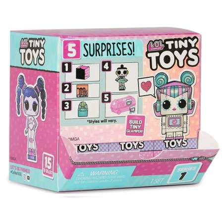 В наборе: куколка LOL Surprise Tiny Toys; прозрачный куб с фоном; 5 сюрпризов.