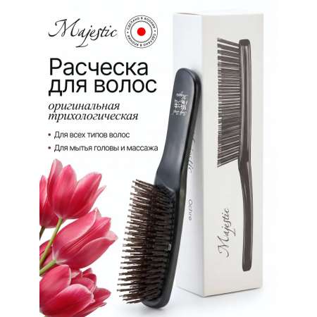 Универсальная расческа Majestic — это уникальный профессиональный трихологический инструмент, созданный японскими учеными для деликатного очищения кожи головы и бережного расчесывания. Подходит для всех типов волос, а также для средней чувствительности кожи головы.