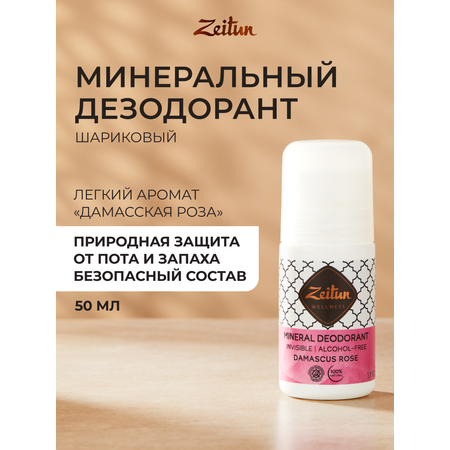 Дезодорант шариковый Zeitun Дамасская роза натуральный с коллоидным серебром 50 мл