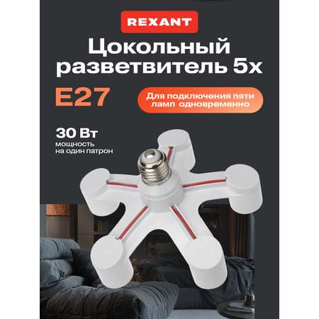 Разветвитель цокольный REXANT Е27 - 5хЕ27 белый