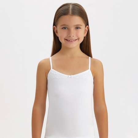 Комфорт в каждом движении! Детская бельевая майка для девочек и девочек-подростков выполнена из мягкого хлопка, который позволяет коже дышать. Белая майка для детей украшена милым атласным бантиком и нежным кружевом.