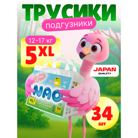 Подгузники-трусики NAO Slim 5 размер XL премиум 12-17 кг 34 шт