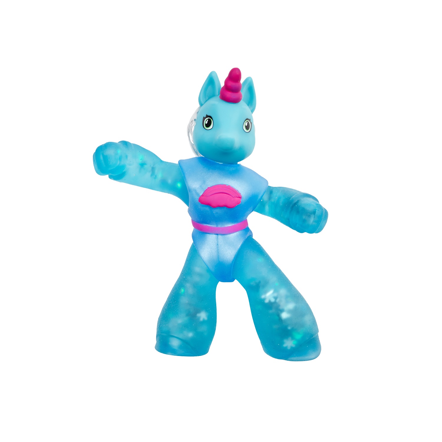 Тянущаяся фигурка Гудзонианс Рокси приятна на ощупь. Игрушка высотой 12 см со съемной одеждой наполнена тянущейся глюкозой и блестками в виде звездочек и снежинок. Внутри игрушки также есть мини-фигурка суперсилы персонажа в виде звезды.