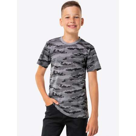 Детская футболка для мальчика и мальчиков подростков выполнена из 100% хлопка. Камуфляжная футболка с принтом соты отлично впишется в детский гардероб на лето. Серую футболку прямого кроя можно использовать для занятий спортом, активного отдыха на природе, а также надевать на тематические праздники и мероприятия.