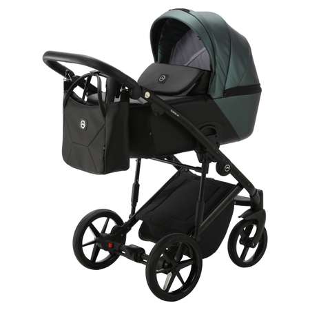 Коляска 3в1 Adamex Mobi Deluxe SD-7 Темно-зеленая и черная эко-кожа
