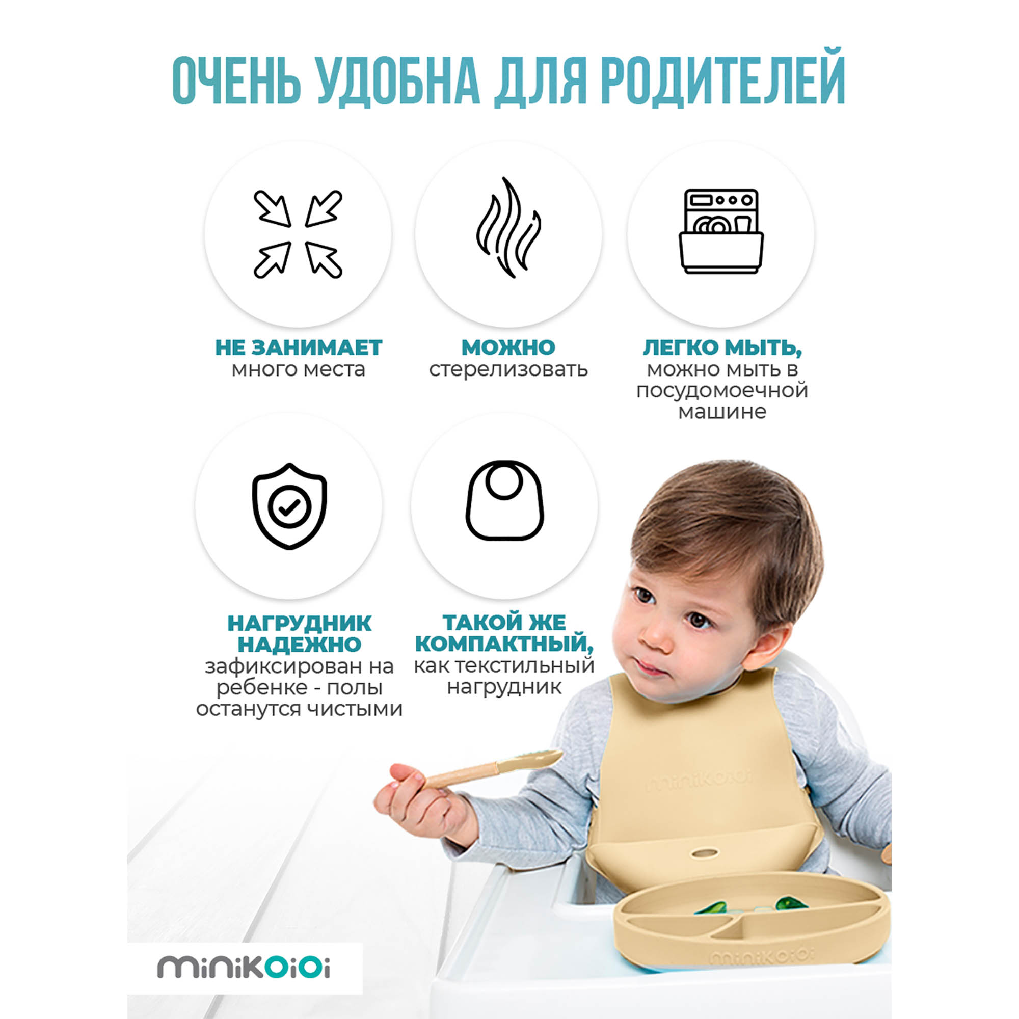 Здравствуйте, дорогие родители! Волшебство в каждом моменте! Представляю вашему вниманию силиконовый нагрудник для кормления Flexi Bib. Помните, безопасность и комфорт ваших малышей - это прежде всего! Этот слюнявчик нагрудник создан из 100% пищевого силикона, сертифицированного в ЕС и РФ. Безопасен для здоровья ваших детей: не содержит BPA, PVC, фталатов, токсинов, латекса, пластика, свинца и тяжелых металлов. Малыши будут в безопасности и комфорте, а их одежда – в чистоте! А удобный карман-держатель спереди нагрудника силиконового с карманом ловит все капли и крошки, защищая одежду от пятен. А регулируемый размер нагрудника силиконового для кормления обеспечит идеальную посадку. А знаете, как легко ухаживать за этим непромокаемым нагрудником? Можно стирать его в стиральной машине и стерилизаторе. Ваш малыш будет чувствовать себя комфортно, а вы – быть спокойными и счастливыми, зная, что выбрали лучший слюнявчик силиконовый с карманом для своего чада.