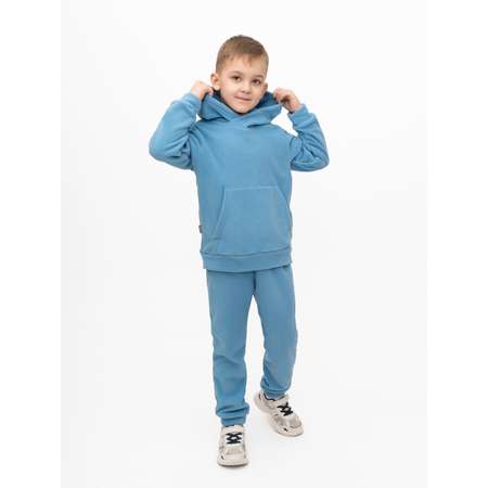 Он легкий, дышащий и отлично сидит на фигуре, подчеркивая активный образ ребенка. Толстовка с капюшоном и с карманом-кенгуру. Низ и рукава на манжете. Брюки (брючки) имеют эластичную резинку, которая позволяет им хорошо облегать телу без давления на живот. Это обеспечивает комфортное ношение в течение всего дня. Костюм сшит в однотонном цвете.