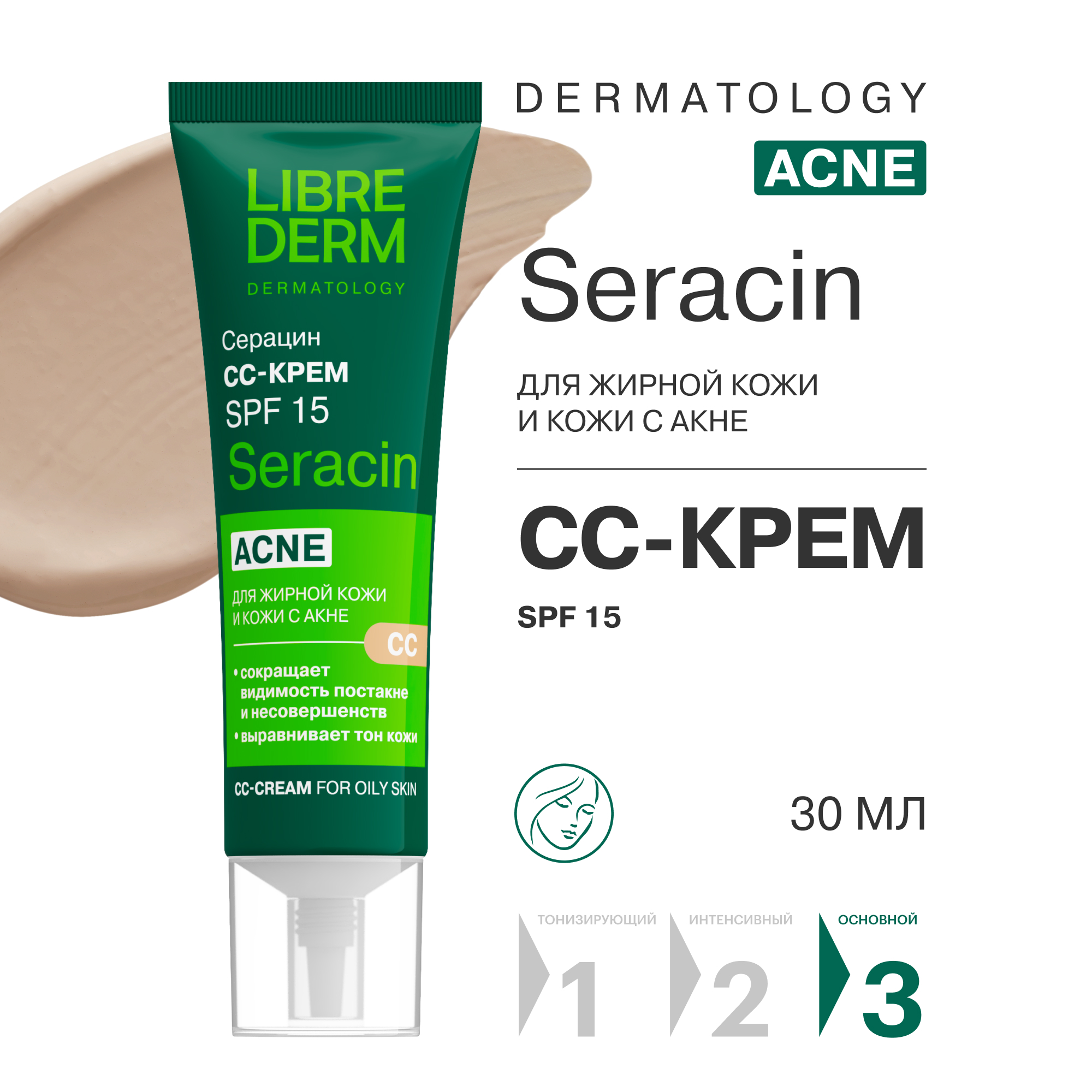СС-крем Librederm SERACIN для жирной кожи лица 30 мл
