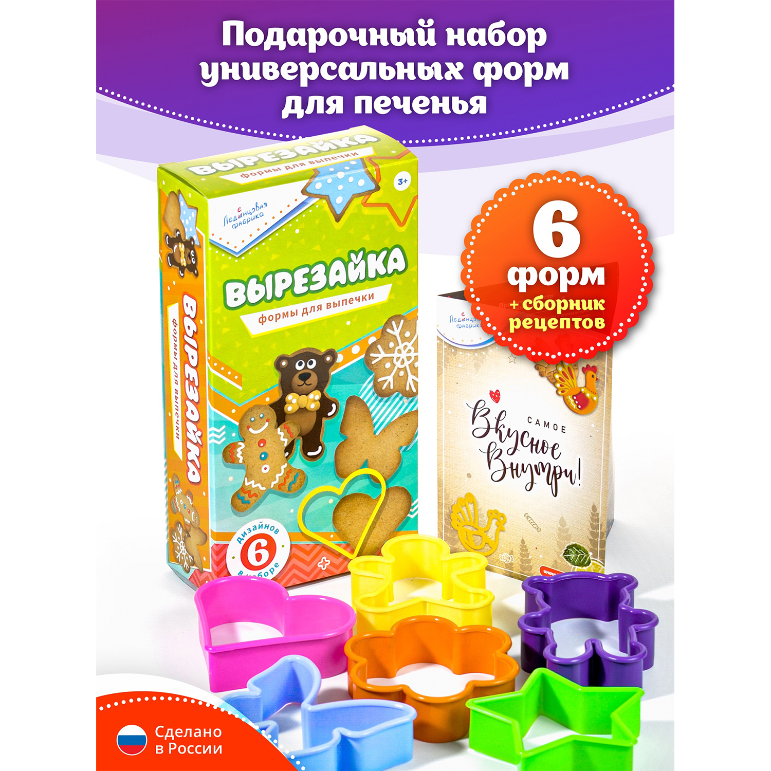 Формочки для печенья и пряников ТМ Леденцовая фабрика отличаются ярким красивым дизайном, внутренним рисунком, который позволит сделать печенье красивым в домашних условиях. Кроме этого, все формы для печенья и пряников разного цвета, это позволит маме и ребенку интересно провести время, готовя выпечку и изучая цвета и картинки на формах. Все вырубки для печенья изготовлены из хорошего пластика, они плотные, это позволит вырезать не только тесто, но и хлеб, колбасу, сыр, марципан. Формы для печенья придают четкий, ровный вид. Формы для пряников абсолютно безопасны, это подтверждено сертификатом и удобны в использовании и взрослому, а особенно интересно ребенку. Все формы можно мыть в посудомоечной машине.Мы собрали три набора из самых популярных форм для печенья и пряников к Пасхе, Новому году и Рождеству, любому празднику и без повода. В наборах вырубки для теста: Дед мороз, Пряничный человек, Снеговик, Елочка, Звезда, Бабочка, Зайчик, ХВ, Пасхальное яйцо, Мишка, Цветочек, Петух и др. Используя формы для печенья и пряников, вы всегда сможете приготовить красивое и вкусное печенье. В каждом наборе приложен сборник вкусных и несложных рецептов по приготовлению имбирных пряников, белковой глазури и др. рецепты, а также кондитерские посыпки для украшения печенья и пряников. Благодаря тому, что мы сделали достойную красивую упаковку, наборы для приготовления печенья и пряников можно дарить на любой праздник: Пасха, Новый год, Рождество, новоселье, день святого Валентина, 8 марта, 23 февраля и просто без повода порадовать маму, дочь, подругу или сестру красивыми формами для печенья и пряников. Вместе приготовив печенье, вы получите массу удовольствия и позитива.