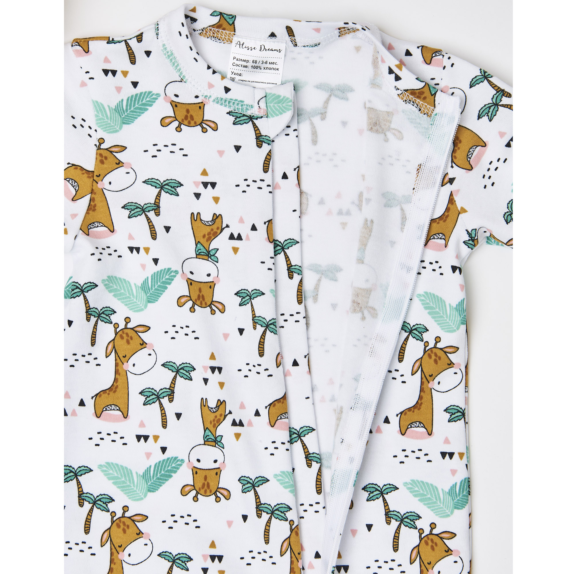 Супер удобный нательный комбинезон для новорожденного на молнии от Alisse Dreams позволит Вам быстро и комфортно переодевать малыша. Слип для новорожденного на молнии выполнен из очень мягкого и нежного трикотажа - интерлока высшего качества, состав - 100% хлопок. Согласно ГОСТу, в размерах 56 и 62 швы выполнены наружу, и добавлены манжеты-антицарапки. В размерах 68, 74 и 80 швы выполнены внутрь и ручка открыта. Ножка закрыта во всех размерах. Изнутри и сверху молнию закрывает защитная планка, таким образом, она не соприкасается с кожей малыша. Продукция сертифицирована.