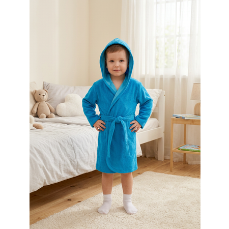 Мягкий махровый халат для мальчика и девочки — незаменимая вещь в повседневной жизни ребёнка: подойдёт как махровый халат банный, халат махровый детский после душа и купания дома, в бассейне или сауне. Хлопковый халат из тонкого одностороннего махрового полотна на запах особенно удобен для бассейна, бани и душа.