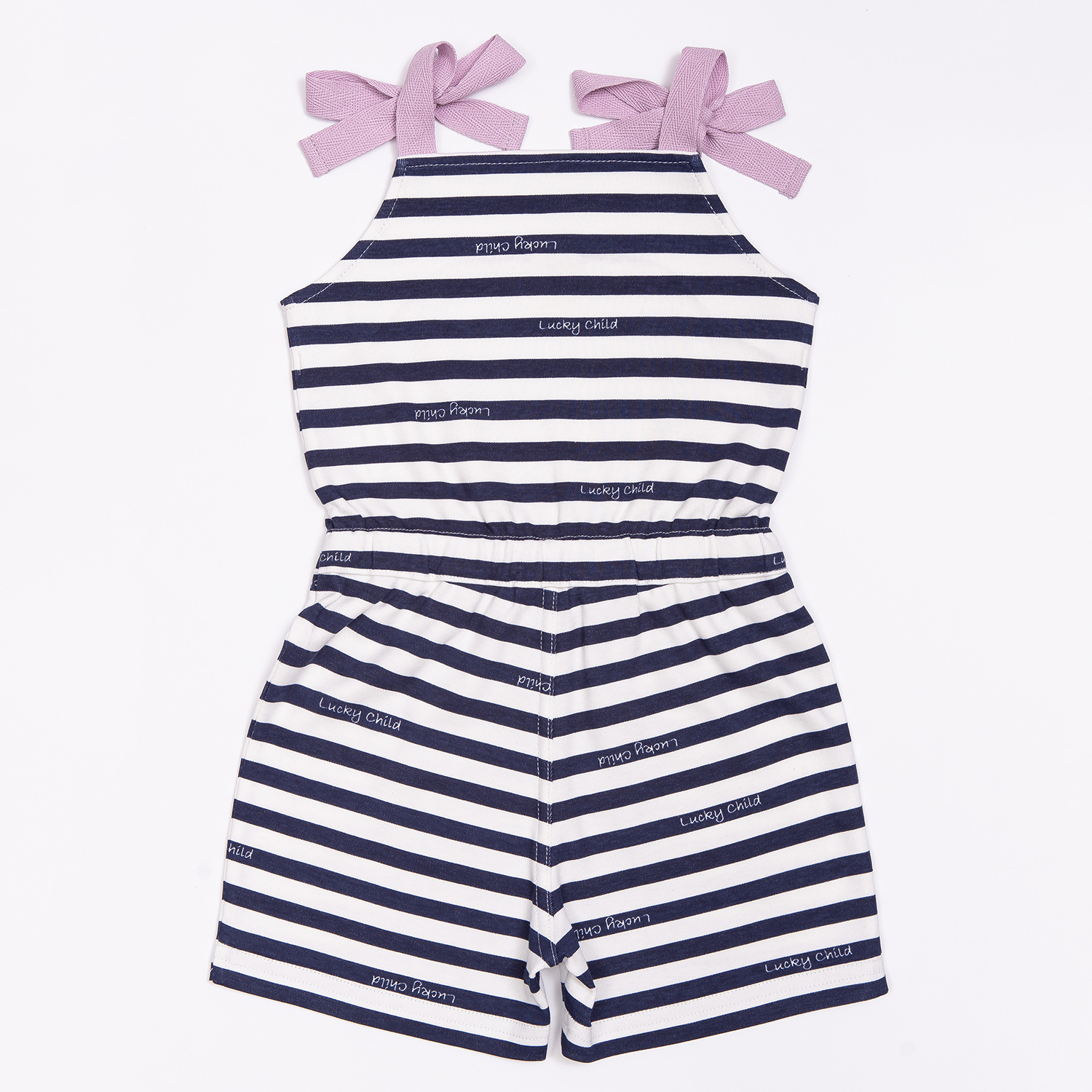 Девчачий летний полукомбинезон от бренда Lucky Child, изготовлен из нежного трикотажа, гарантирующего высочайший уровень комфорта для вашей малышки. Важно отметить, что бантики на комбинезоне пришиты таким образом, что их можно легко распустить. Кроме того, банты можно перевязать по желанию. Одежда для девочек от российского производителя. Элегантный ромпер с шортами имеет свободный крой и отлично сохраняет форму. В этом стильном полукомбинезоне ваша маленькая девочка всегда будет выглядеть нарядно, а его легко можно надеть и снять благодаря лямкам на плечах. Слитные майка топ и шорты - идеальны для ежедневного ношения дома, в саду, на улице или на пляже. Этот легкий комбинезон отлично подходит как для пляжного, так и для уличного наряда. Летний костюм для девочки подойдет для танцев, детских праздников или повседневного ношения в детском саду. Комбинезон летний для девочки хорошо сочетается с любым теплым верхом для прохладных вечеров. Яркий принт в полоску не только притягивает взгляды, но и вносит веселую нотку в детское настроение.