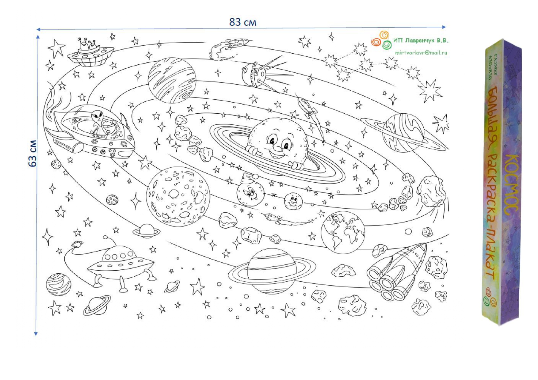 Огромная раскраска Космос для детей, для мальчиков и девочек. Размер 63см на 83 см в красочном подарочном тубусе. Отличный подарок для ребенка на любой праздник, день рождения, 8 марта, 23 февраля, на Новый год, на Рождество!
