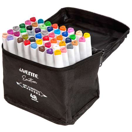 Набор маркеров для скетчинга "deVENTE. Emotion" 48 цветов, двусторонние (кистевидный 2 мм/скошенный до 6 мм) эргономичный трёхгранный корпус, чернила на спиртовой основе, в текстильной сумкеЦены в интернет-магазине могут отличаться от розничных магазинов.