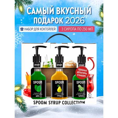 Набор сиропов SPOOM Тархун Груша Мята для коктейлей лимонадов и чая3шт 250мл + 3 дозатора