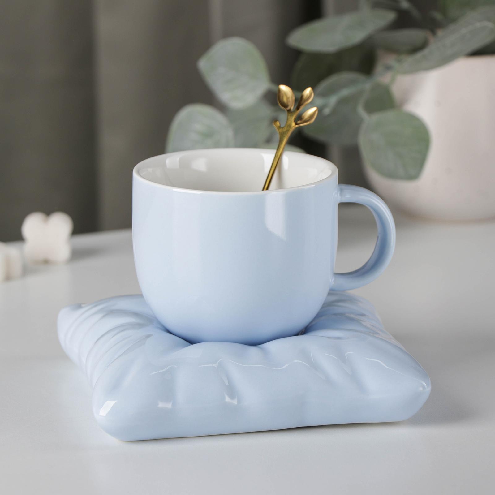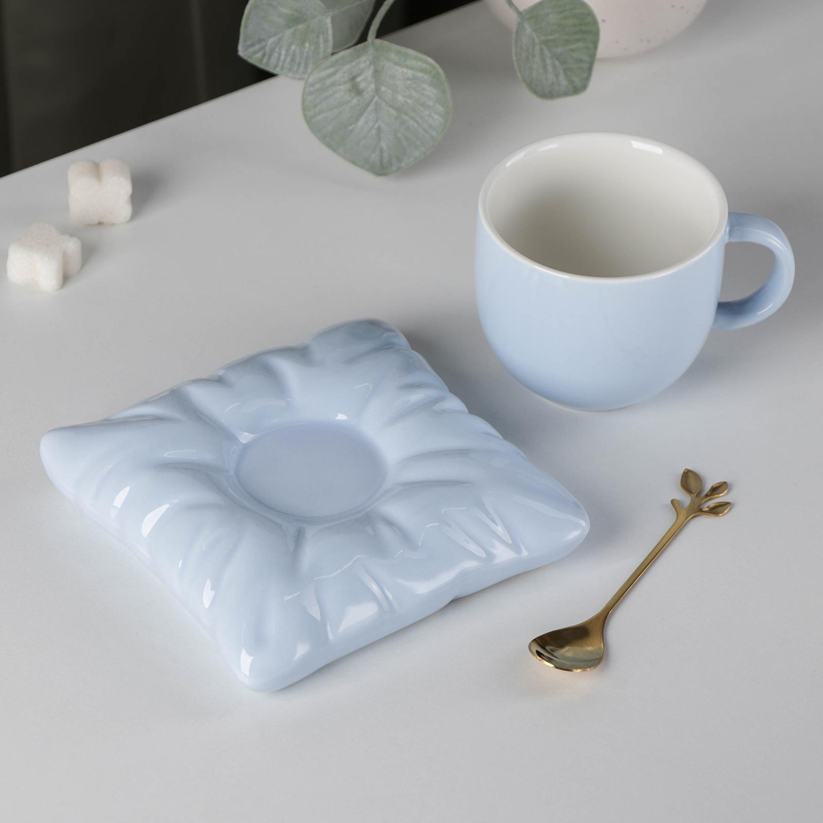 Чайная пара керамическая с ложкой Sima-Land «Зефирка», 2 предмета: чашка 250 мл, блюдце d=13 см