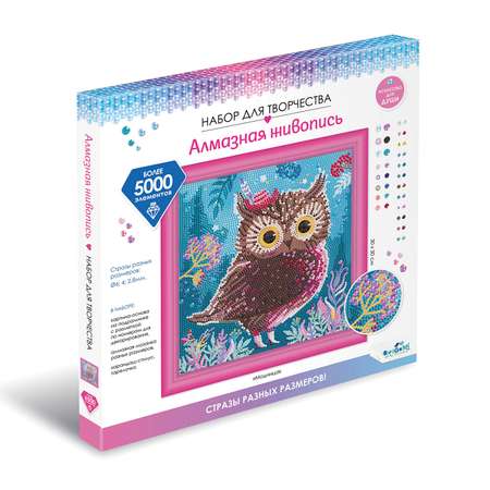 Разноразмерная мозаика на подрамнике - новинка, которая понравится всем любителям алмазной живописи! Картина-основа теперь имеет деревянный подрамник, с помощью которого вы сможете сразу повесить готовую работу на стену. Круглые стразы разного размера усложнят сборку мозаики, помогут расставить акценты на картине и сделают творческий процесс еще интереснее! Картина с совой идеально впишется в интерьер спальни и будет красиво переливаться на свету.