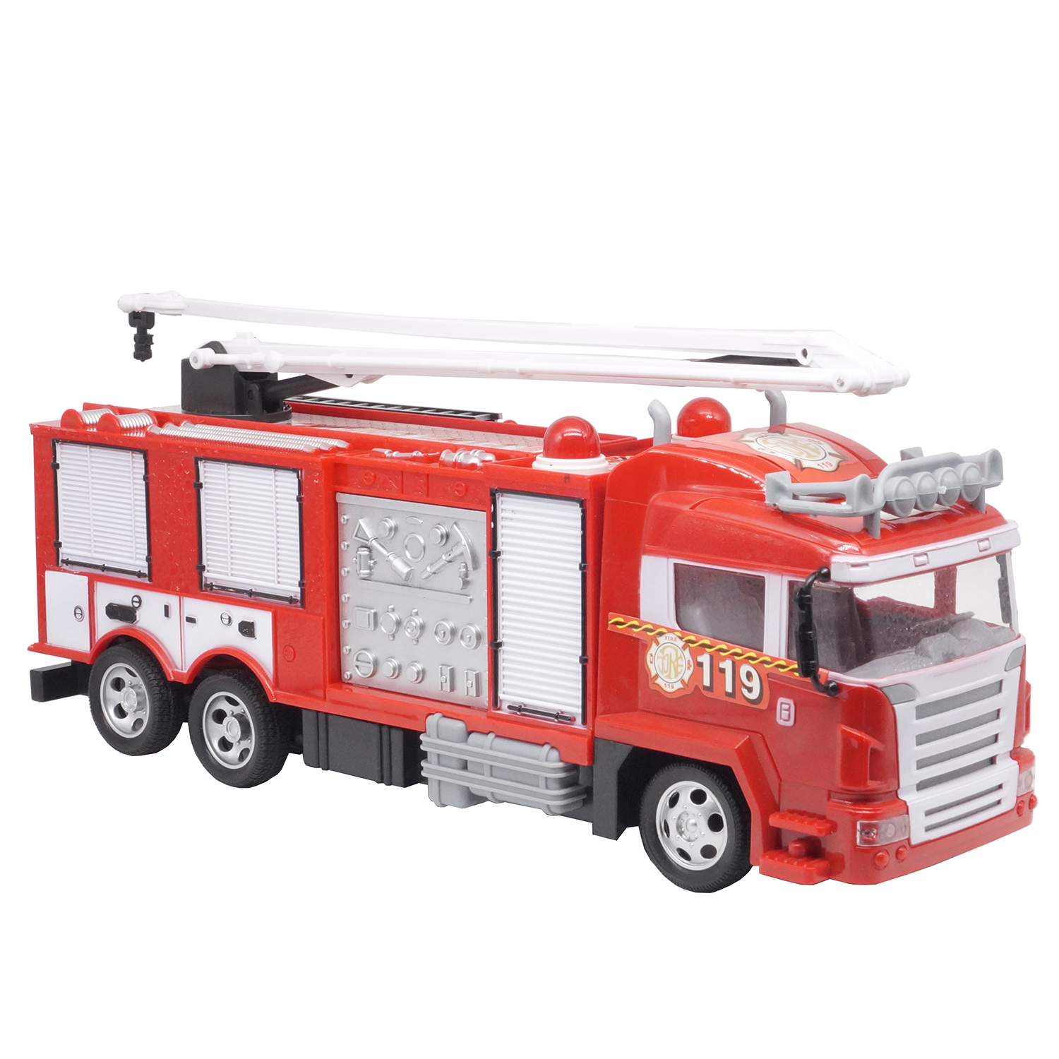 Радиоуправляемая пожарная машина оснащена подъемной стрелой и корпусом с высокой точностью детализации и реалистичностью. Ребенок сможет почувствовать себя в роли храброго и отважного пожарника или придумать собственный увлекательный сюжет. Детям будет невероятно интересно играть с такой машинкой!