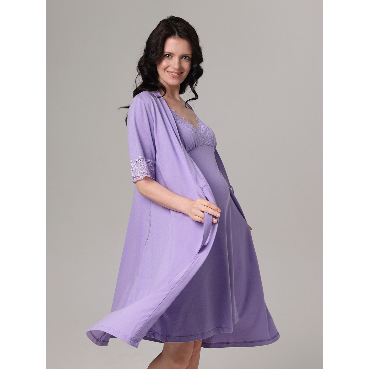 Комплект для беременных в роддом пеньюар и ночная сорочка. Халат с сорочкой из хлопка - это самая комфортная домашняя одежда для беременных. Ночная рубашка женская для беременных и кормящих выполнена на бретелях, специально для удобного кормления малыша. Сорочка с кружевом для рожениц позволяет коже свободно дышать, хорошо впитывает влагу, не прилипает к телу и подойдет как ночная рубашка в роддом. Домашняя одежда для кормления приятна к телу и не сдавливает животик. Ночнушка женская во время сна и отдыха дарит максимальный комфорт. В меру короткая родовая сорочка с высокой посадкой и красивый халат с коротким рукавом позволят девушке даже дома и в больнице выглядеть женственно. Домашний костюм для кормления, а именно халат с ночнушкой позволяет будущей маме выглядеть стильно и чувствовать себя комфортно во время беременности и после родов.