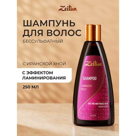 Шампунь для тонких волос Zeitun Эффект ламинирования безсульфатный с иранской хной 250 мл