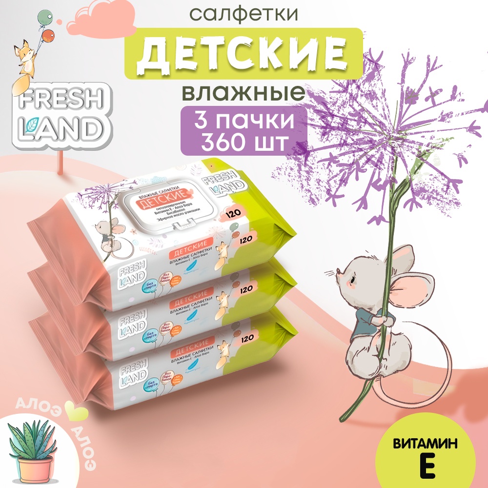 Цена на Влажные салфетки FRESHLAND 3 упак. 120 шт. - 450 ₽.